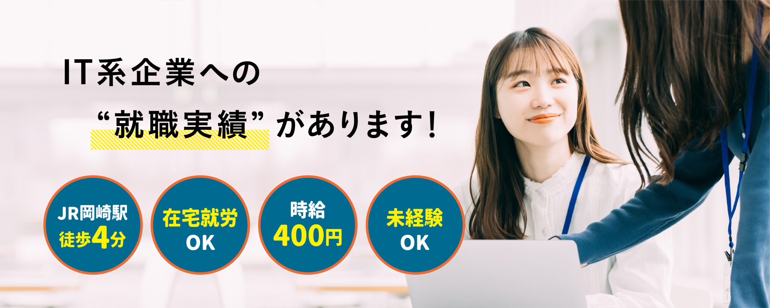 岡崎駅から約徒歩4分なので通勤も快適です。また、通勤が困難な方向けに、車両での拠点送迎も対応しております。