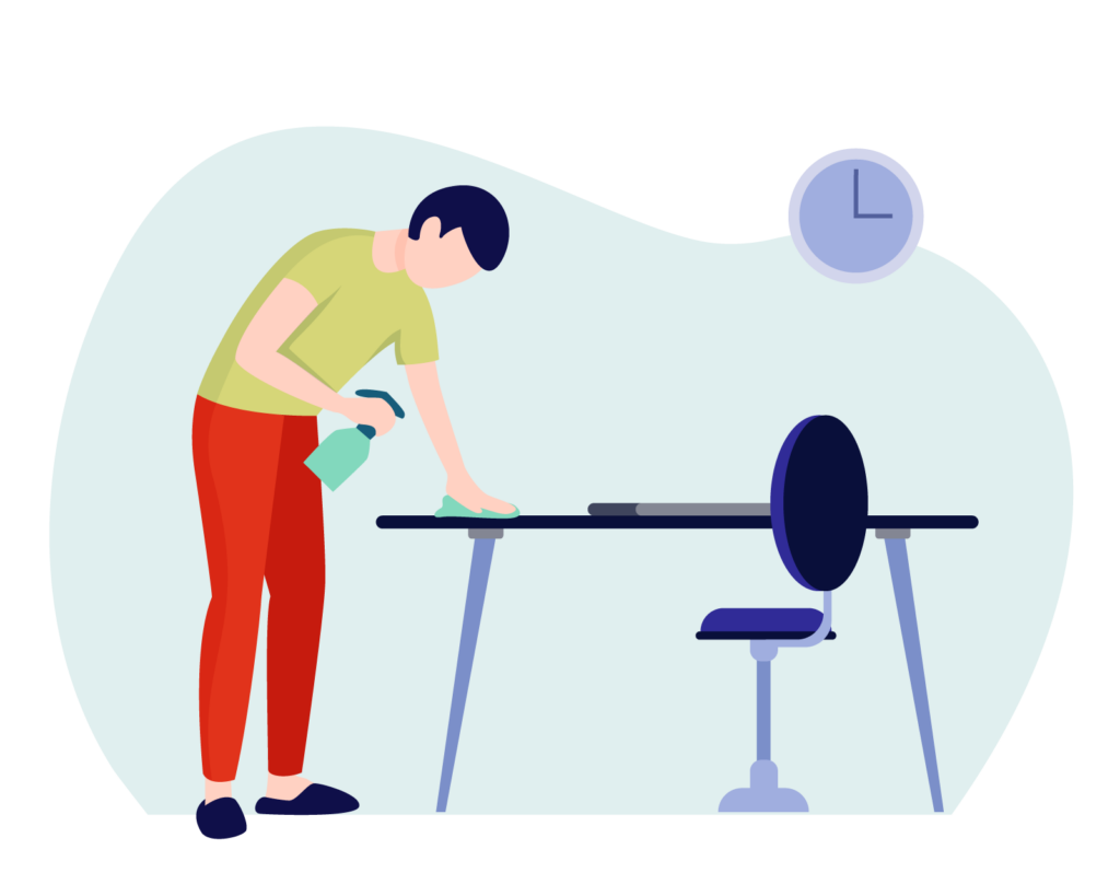 ご自身が使用したマウスや椅子を消毒、整理整頓や片付をして退所。